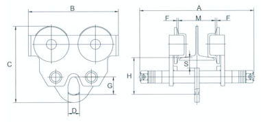 单轨行车是一种结构简单、操作方便、轻小型调运配套起重机械,它可以与手拉葫芦、环链电动葫芦等起重产品配套组成起重运输小车,自如地运行于可以有一定曲率半径的工字钢轨道的下翼缘上,用来调运货物、设备等。